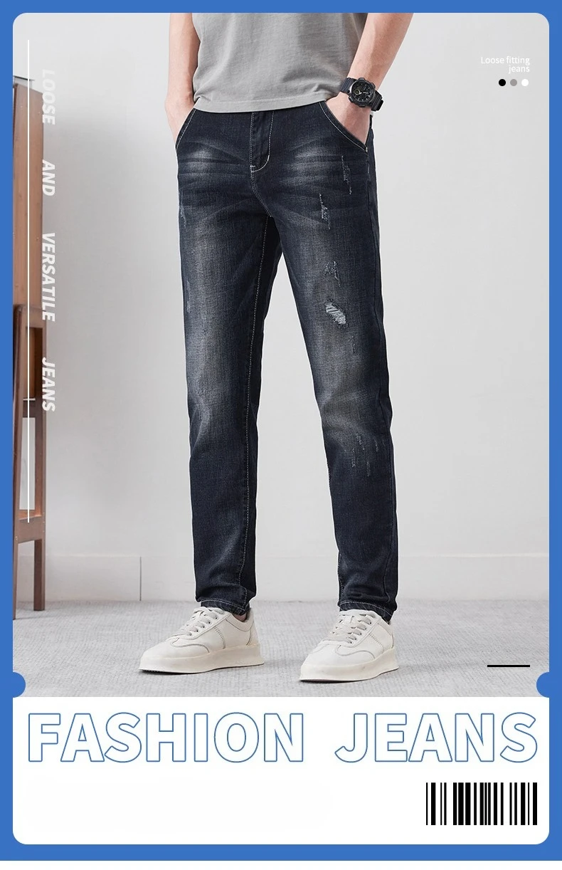 Men's Vintage Jeans Fashion Slim Stretch Comfortable Skinny Trousers Hip-hop Distress Personality Streetwear Male Denim Pants