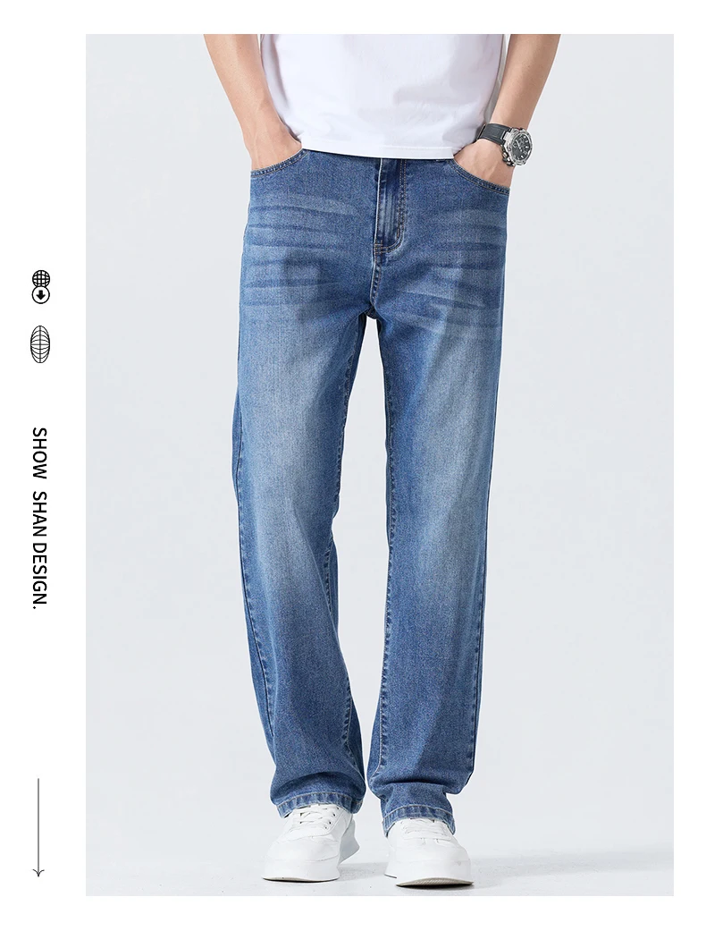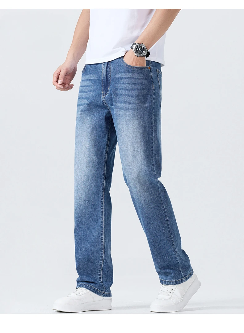 4-color Summer Thin Men's Jeans Soft Breathable Straight Comfortable Trousers Male Brand Business Loose Denim Pants